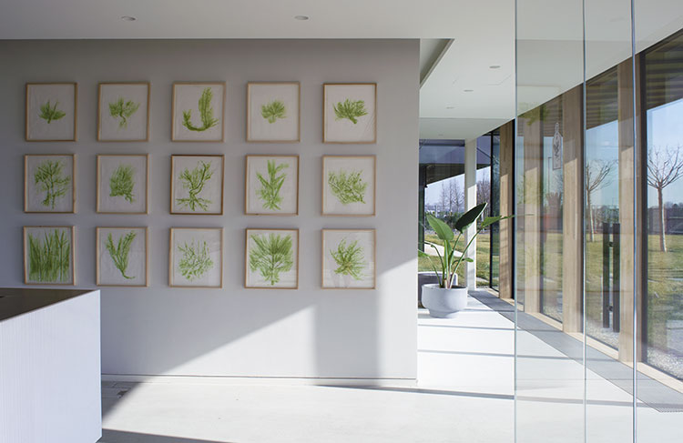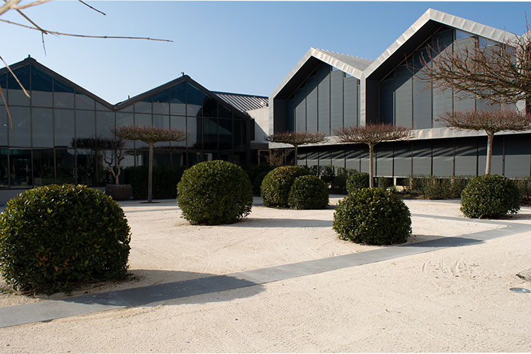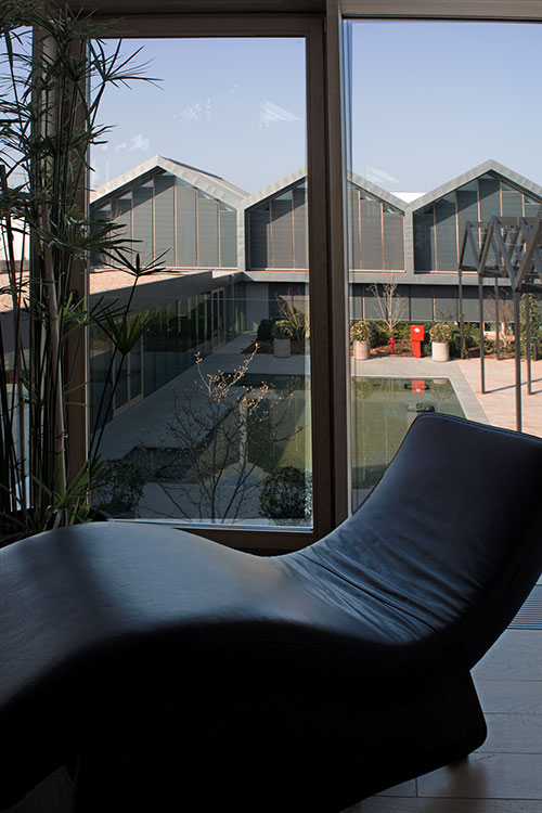 Il verde dialoga costantemente con l’architettura, ci sono un orto scientifico, un grande giardino, due corti interne e il Kilometro Verde che scherma l’azienda dall’autostrada.